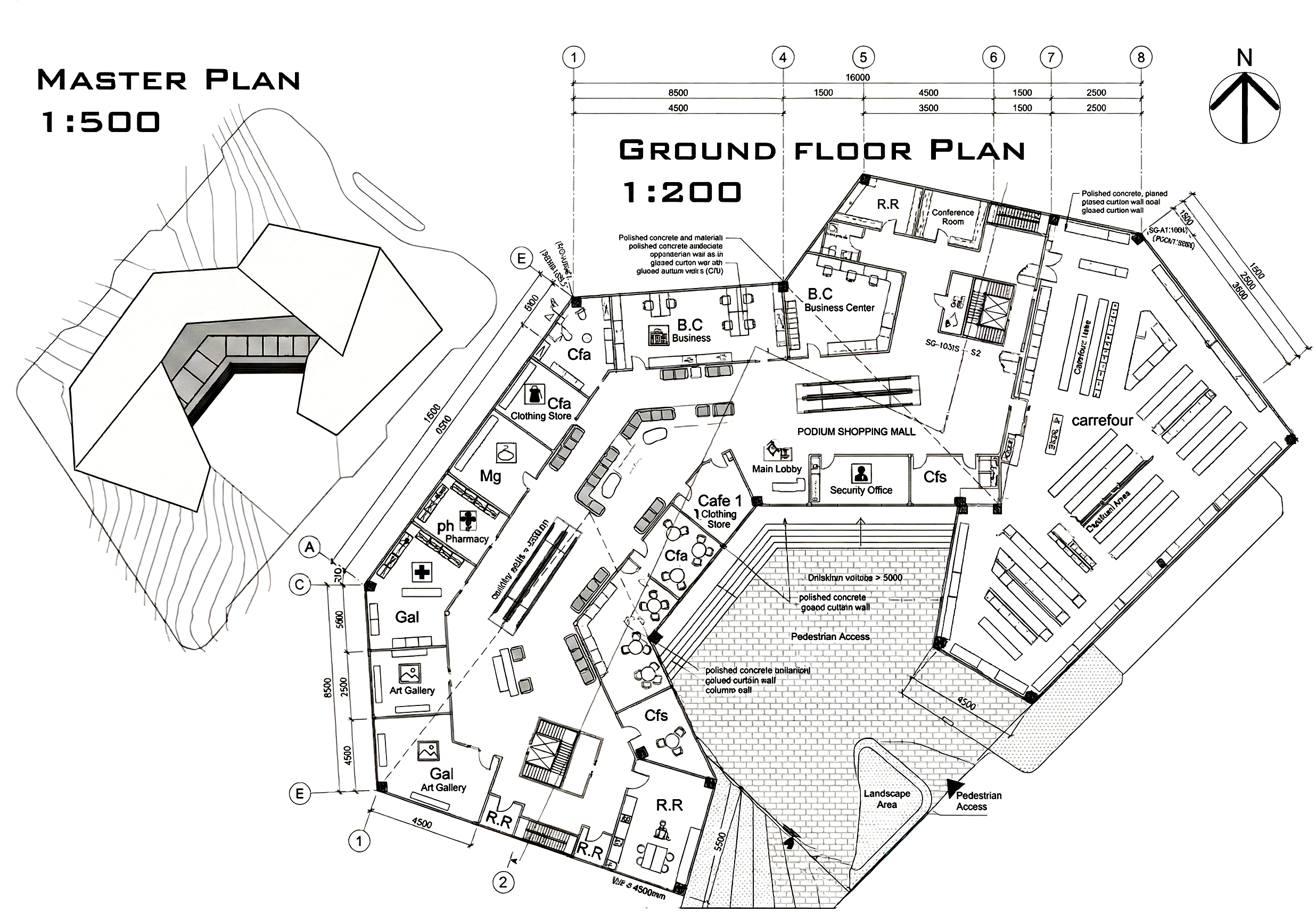 Mixed spaces between auto show dealership and private office spaces lines and natural finishes.