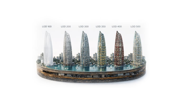 LOD 500 | As-Built: Represents the final verified model reflecting what was actually installed in the field.