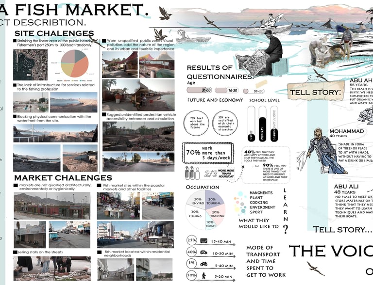 The Fish Market, located in Aqaba, Jordan, occupies a site of 380,000 square feet and has long been a vital part of the city. It serves as both a cultural landmark and a hub for locals and tourists. This project emphasizes the market’s role as a place for people, creating an open, visible, and vibrant environment that encourages social interaction and movement between different areas of the city. The design integrates the market with surrounding public life, providing dynamic spaces for daily activities and festivals. With thoughtfully framed views and gathering areas, the Fish Market continues its legacy as a cultural hotspot where traditional trade thrives, public life flourishes, and the city’s identity is celebrated.