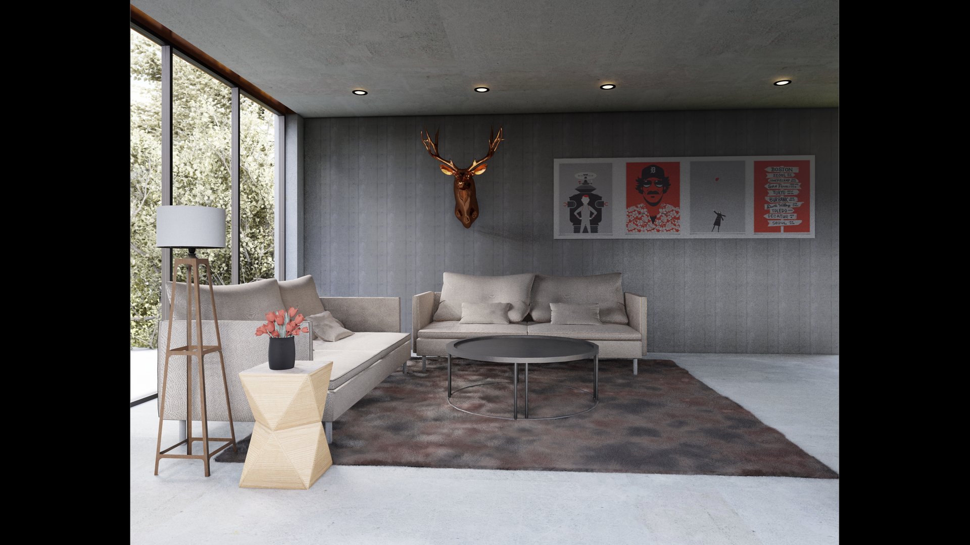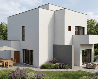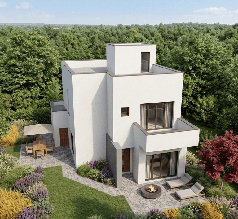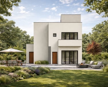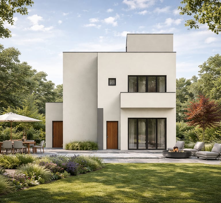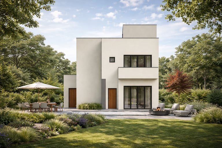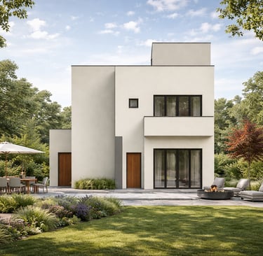 Residential sanctuary with earthy materials and clean lines.